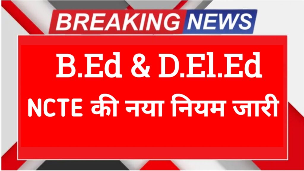 B.Ed & D.El.Ed Latest Update 2025: NCTE (National Council for Teacher Education) ने B.Ed और D.El.Ed को लेकर कुछ बहुत महत्वपूर्ण बदलाव किए हैं। ये नए नियम उन सभी विद्यार्थियों के लिए बहुत ही जरूरी हैं जो Teacher बनने का सपना रखते हैं। चलिए जानते हैं—क्या बदला है, किस तरह Admission होंगे और क्या इसका असर आपकी पढ़ाई पर पड़ेगा?